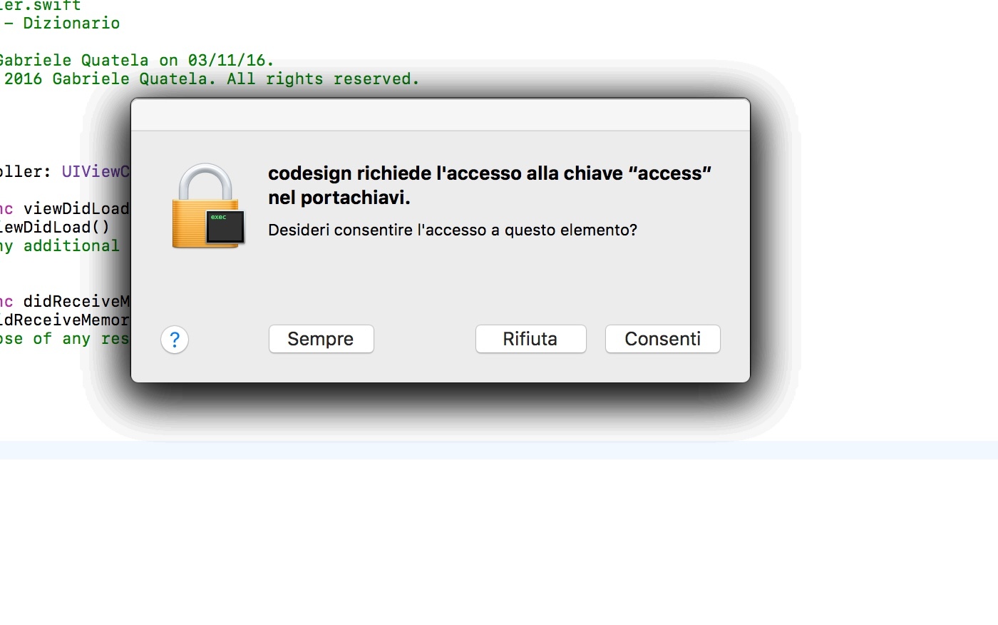 and if I click on ‘consenti’ (in English ‘allow’) pop up other codesign prompt. I’ve not counted but may 15, 20 popup come out.