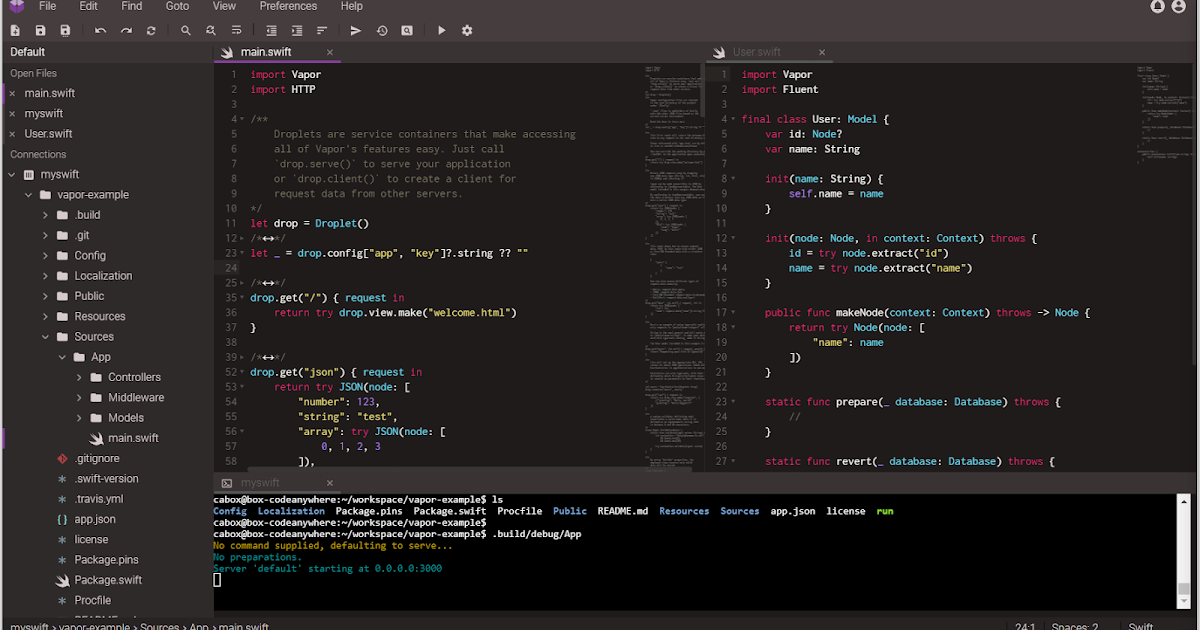 The following article is going to show how to upgrade the Swift release in the pre-defined container, download the Vapor framework/example, and launch the Vapor example in the Codeanywhere environment.